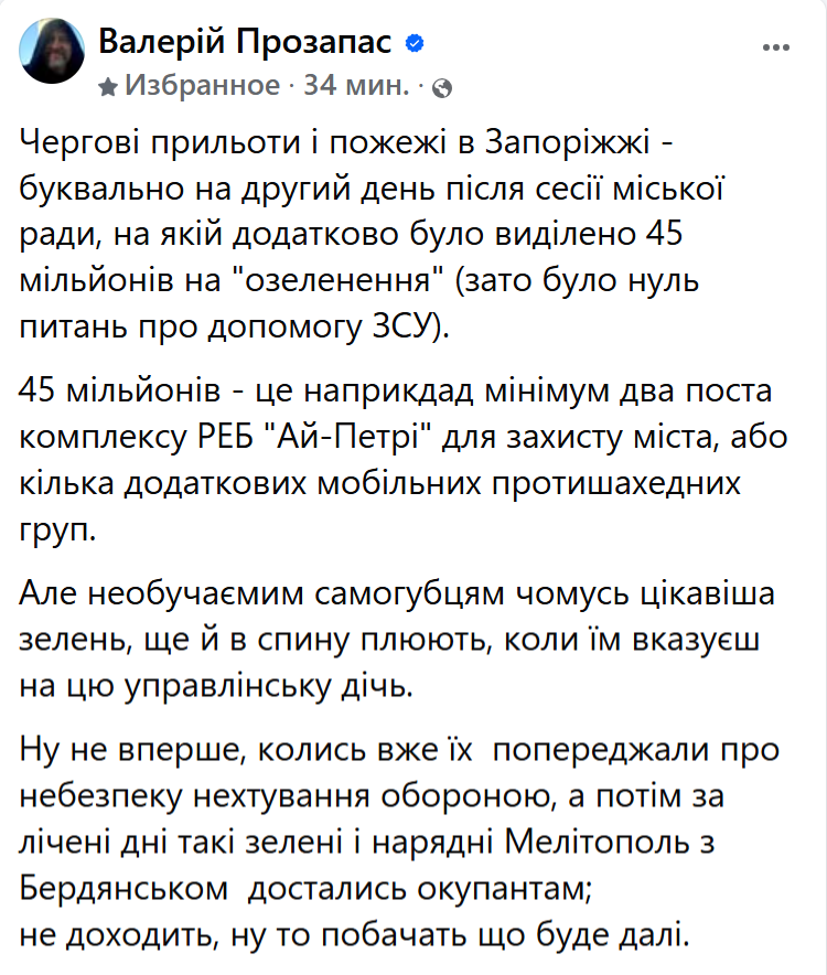 Впоследствии глава ОВА Федоров сообщил, что россияне атаковали критическую инфраструктуру Запорожья.