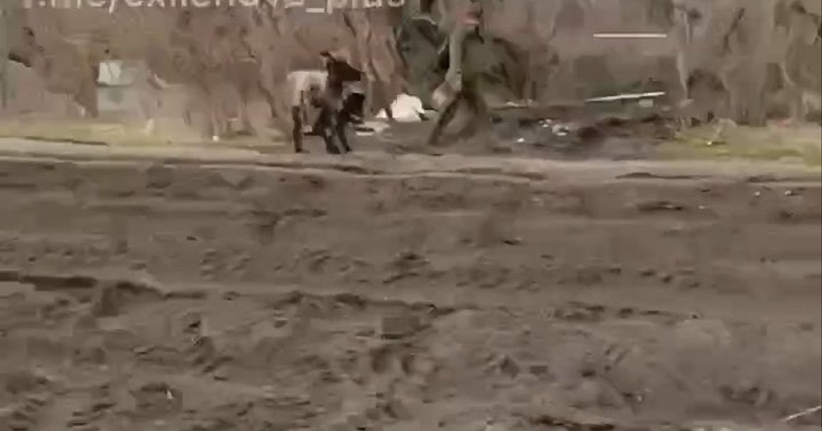В сети опубликована видеозапись, на которой российский штурмовик на мотоцикле снимает приспешника, который тянет по дороге вдоль лесополосы осла.