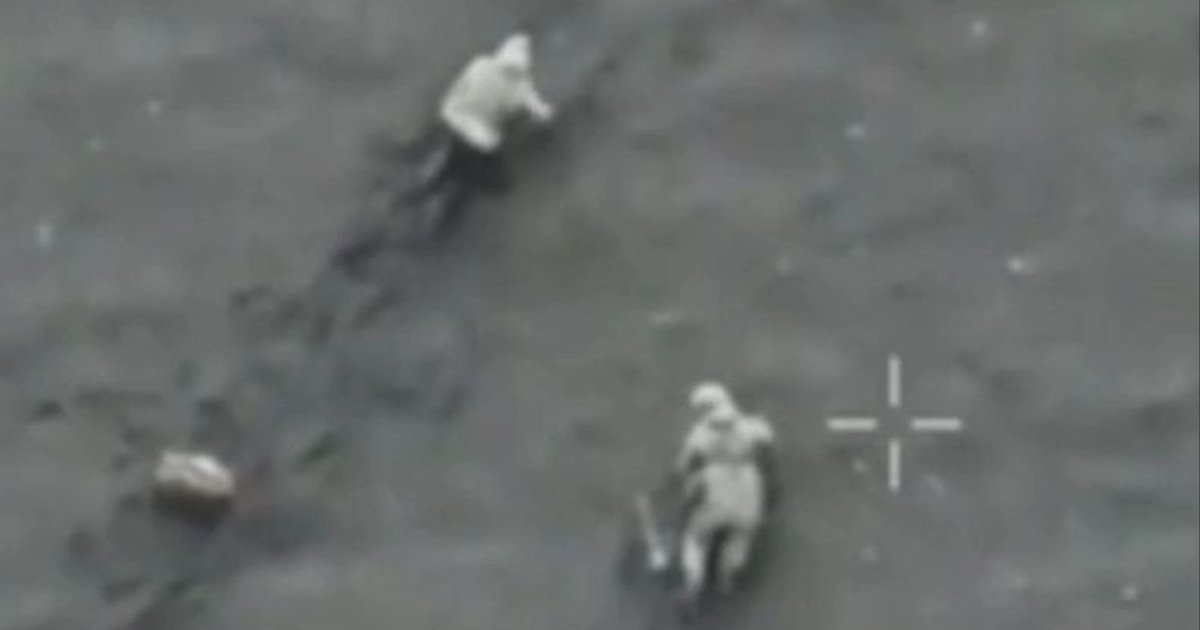 Двое оккупантов на коленях ползут по полю на штурм. ВИДЕО