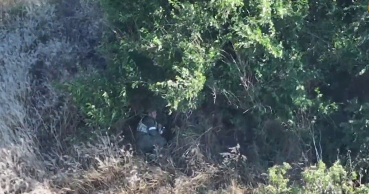 Оккупант неудачно спрятался под кустом и сгорел после атаки украинских дронов. ВИДЕО