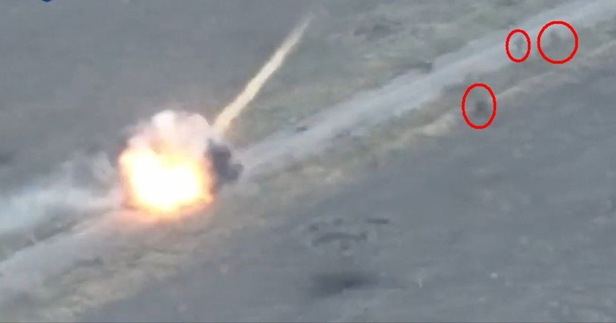 Как сообщает Цензор.НЕТ, на видеозаписи, опубликованной в соцсетях, видно, что уцелевшие российские штурмовики бросились бежать, через несколько секунд в БМП попал еще один боеприпас.