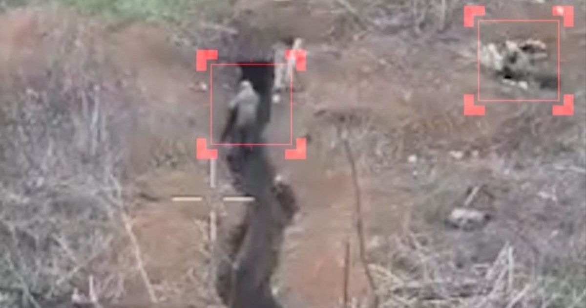 Как сообщает Цензор.НЕТ, один из оккупантов был ликвидирован во рву, а его сообщник - буквально через мгновение следующим дроном разорван на клочья.