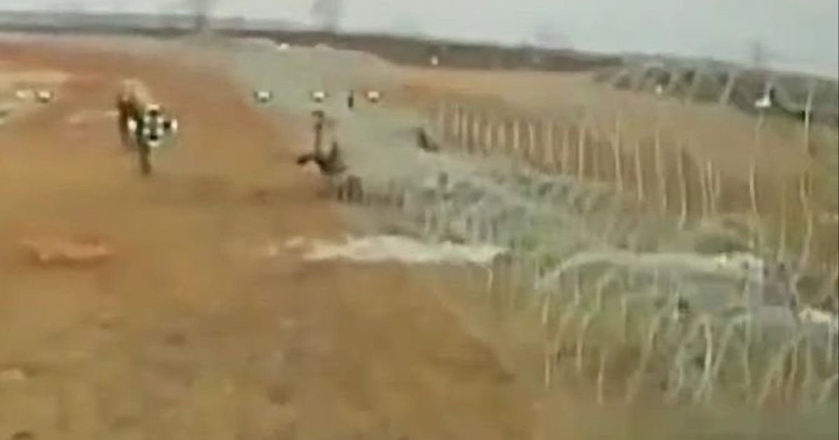 Дрон добивает двух оккупантов, запутавшихся в колючей проволоке. ВИДЕО