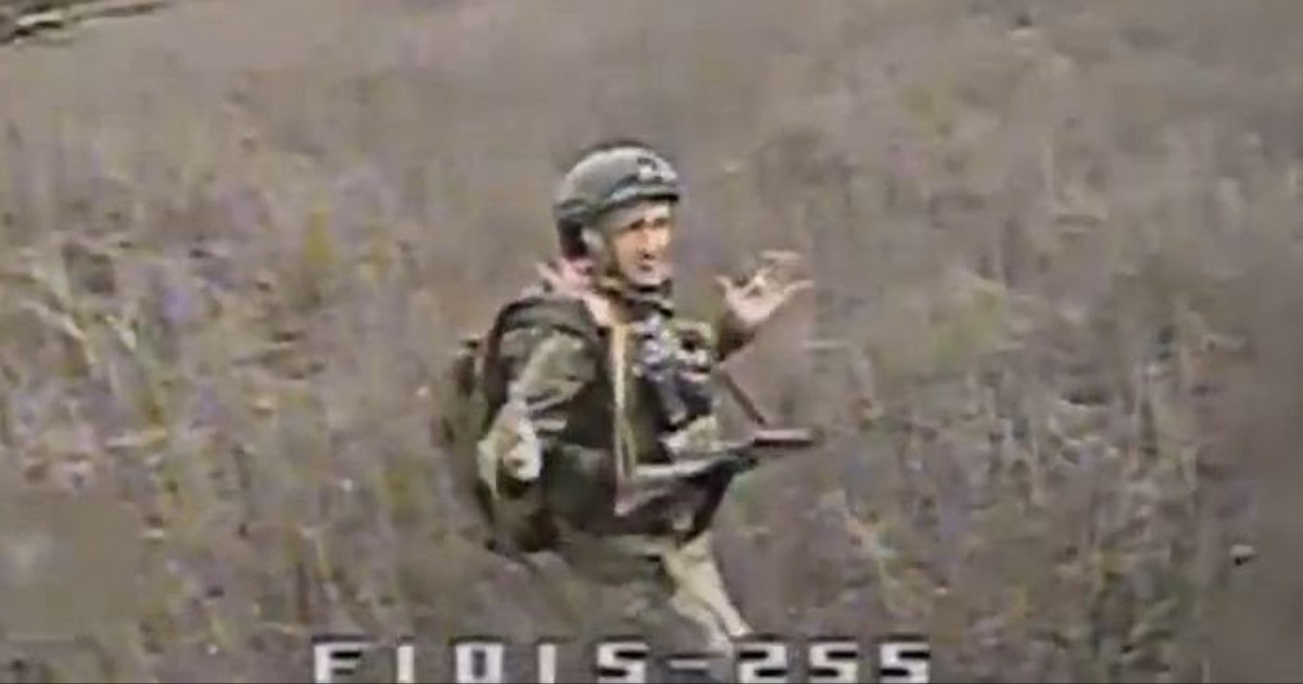 Оккупант идет по заросшему полю, смотрит на украинский дрон и смиренно принимает смерть. ВИДЕО 18+