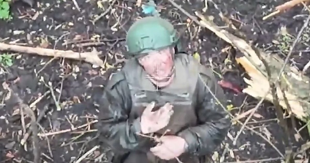 Россиянин кланяется и крестится перед украинским дроном и просится в плен. ВИДЕО
