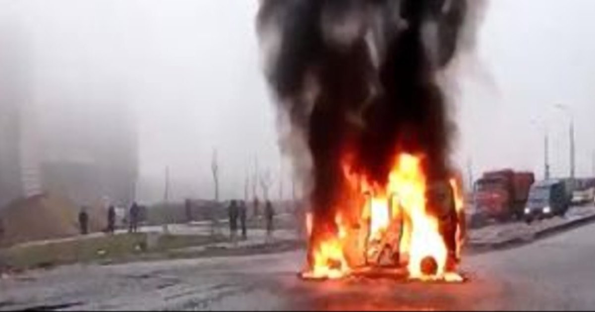 На севере российского Санкт-Петербурга неизвестные расстреляли полицейский автомобиль "УАЗ". В результате нападения погибли двое сотрудников МВД. Машина полностью сгорела.