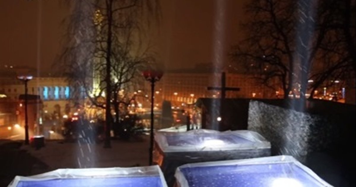 Об этом сообщает Цензор.НЕТ со ссылкой на Українські Новини.По состоянию на 18:00 перед собравшимися выступил ведущий Евромайдана Евгений Нищук. После этого под музыку оркестра в небо были запущены лучи света, каждый из которых символизирует одного из погибших во время "Революции достоинства".