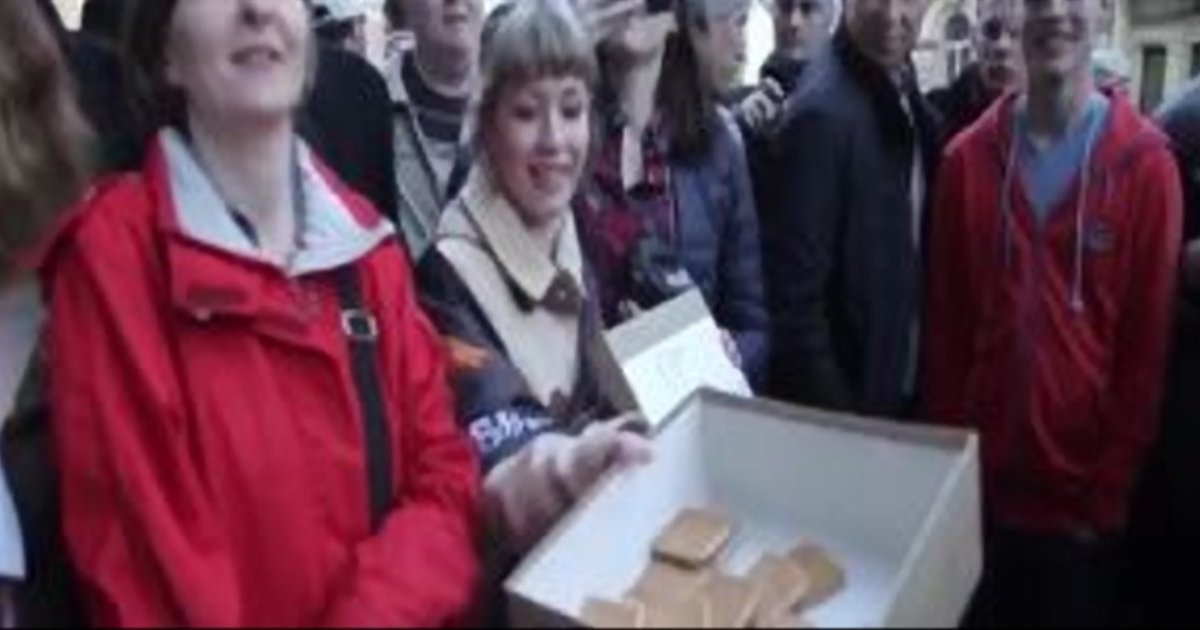"Аттракцион "Живой национал-предатель!" Последний сезон. Подходим, смотрим!", - питерцев, требующих отставки Путина, кормили "печеньками Госдепа". ВИДЕО