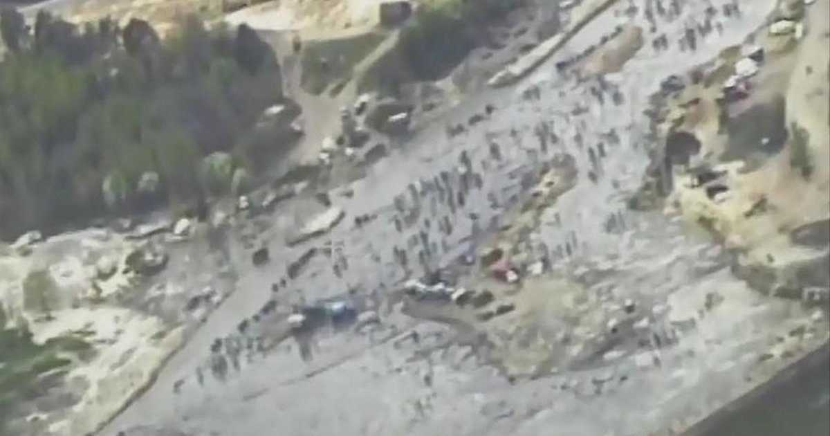 Дійство нагадувало фільми про війну. Вантажівки буксували в болоті, старателі штовхали мотопомпи та вантажили їх в кузови, натовпи людей з сачками тікали в ліс. Здавалося, ось-ось налетять ворожі бомбардувальники.