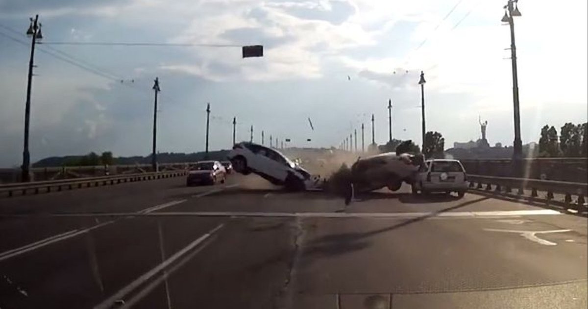 Опубликована запись вчерашнего лобового столкновения на мосту Патона в Киеве. ВИДЕО