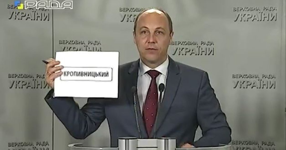 "Мы возвратили украинским городам давние названия. Это и Олешки на Херсонщине, Каменское на Днепропетровщине, Бахмут на Донетчине. Сегодня мы переименовали еще 10 согласованных с общинами населенных пунктов. Но главное, мы сегодня переименовали областной центр Кировоград. Давнее украинское, козацкое поселение не может носить не имперское, ни советское название. Теперь Кировоград стал Кропивницким. Это решение профильного комитета объединило зал", - пояснил Парубий и подписал постановление о переименовании Кировограда в Кропивницкий.