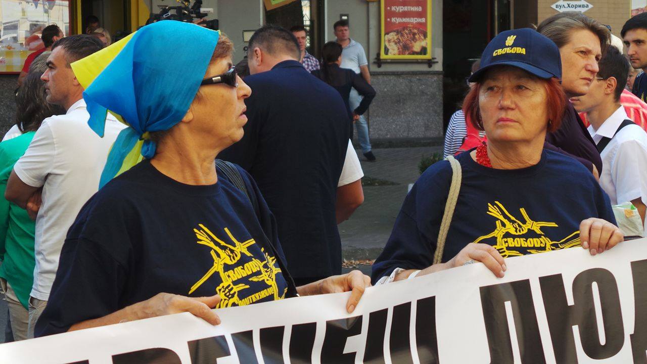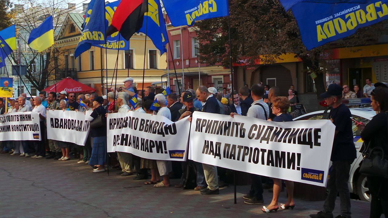 Митинг активистов "Свободы" под Подольским райсудом Киева.