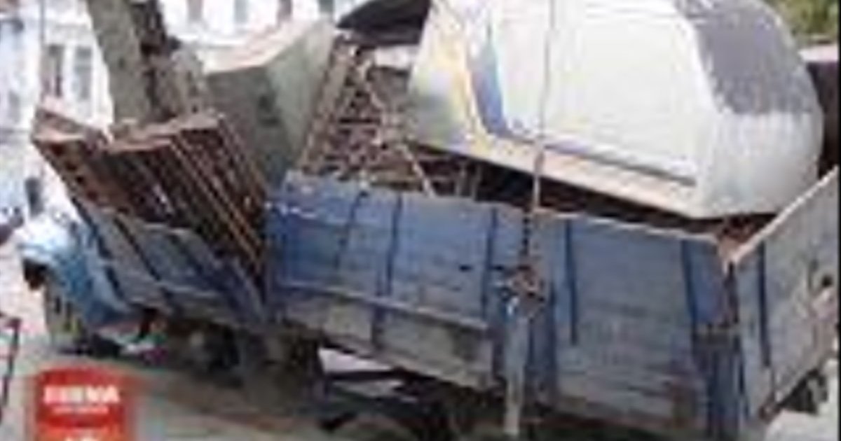 Следствие установило - что это тот самый боливар о котором нам говорили в Москве. Вчера с помощю этой адской машины были снесены врата в Киево-Печерскую лавру по заказу УПЦ МП , а сегодня он провалился в приисподню в районе древней речушки Почайны, в которой святой Владимир крестил Русь. аминь.