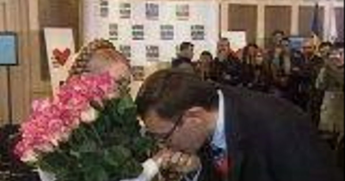 Луценко на радостях расцеловал Тимошенко и подарил букет роз. ВИДЕО.