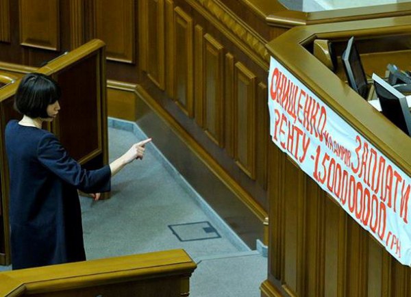 Минулого тижня я повісила плакат у ВР -"Онищенко заплати податки в бюджет 1.5 млрд грн".