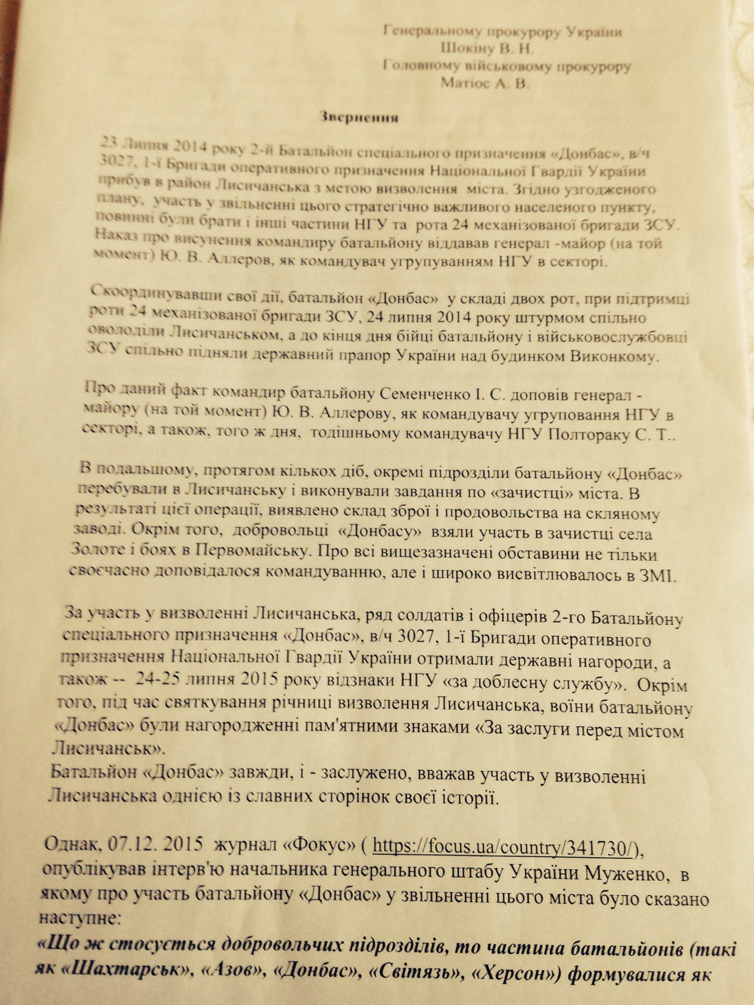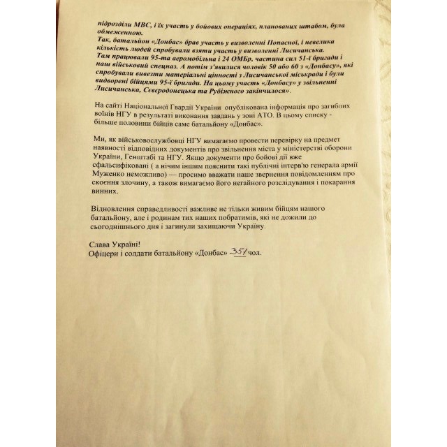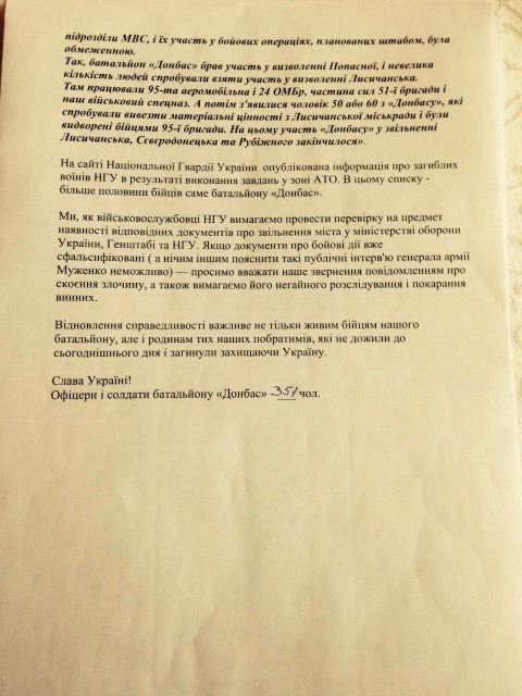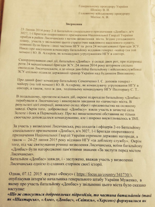 Кстати, по поводу данного заявления на имя Министра Обороны личный состав батальона «Донбасс» написал официальное коллективное обращение, но никакого вразумительного ответа либо опровержения мы по сей день так и не получили.