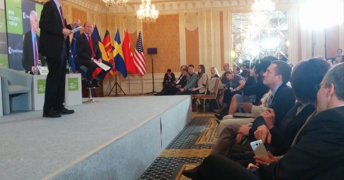 Виступ генерала-майора Анатолія Петренка (Генштаб ЗСУ, до березня 2016 - військовий представник України при НАТО)Президент України Петро Порошенко не з'явився на Форум. Народні депутати його теж проігнорували. Хоча у п'ятницю, у другий день роботи, зал засідань парламенту був традиційно більш ніж наполовину порожнім. Представники Старої Європи теж не приїхали висловитися з безпекових питань. Основні ідеї державними діячами та експертами-приятелями України зафіксовані і повторені. Але, як то кажуть, наші проблеми залишаються нашими проблемами. Проблеми індіанців, як мовиться, шерифа не цікавлять. А дарма.