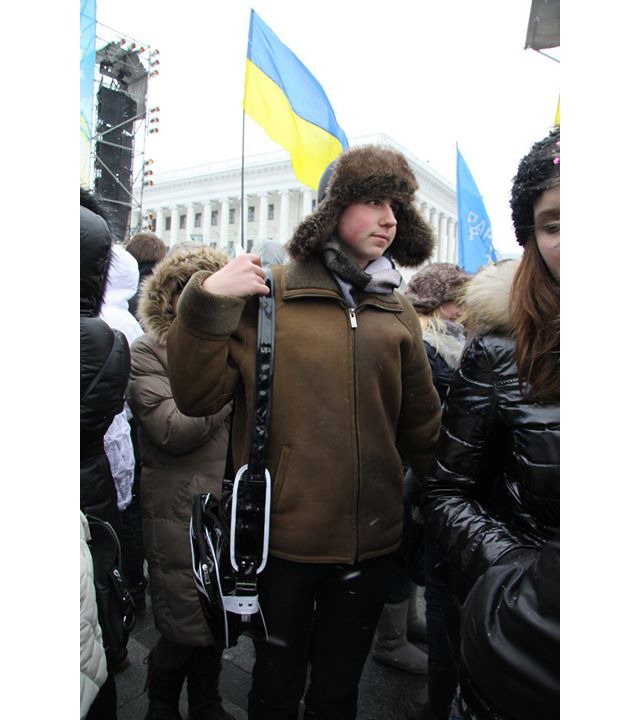 Один з організаторів роздачі грошей мітингарям за ПР, лютий 2011. Автор фото - Олександр Ратушняк.