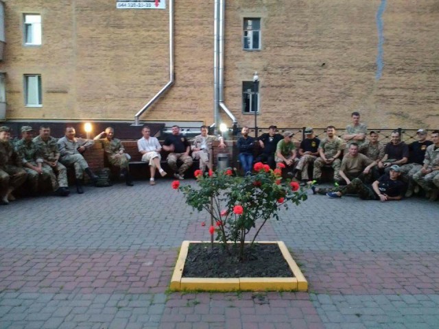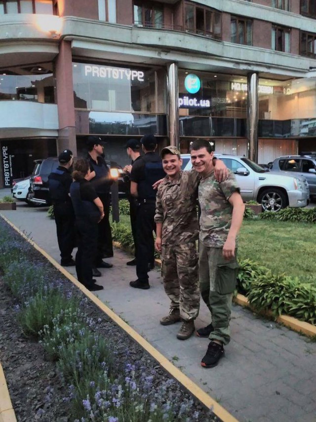- ну и хотелось бы поподробнее о «вмешательстве силовых и оперативных подразделений» - где вмешались, с кем, кого задержали и прочее? Фото может там есть какое или видео данного конфликта? Это ж центр Киева! Неужели средь бела дня никто ничего не видел? Эй, народ, кто там с активной гражданской позицией - отзовитесь! Таки нашёлся один достойный человек, который сфотографировал момент "вмешательства силовых подразделений" - на фото, вероятно, происходит задержание ветеранов батальона "Донбасс". Хотя может я и ошибаюсь, так как фото недостаточно хорошего качества)