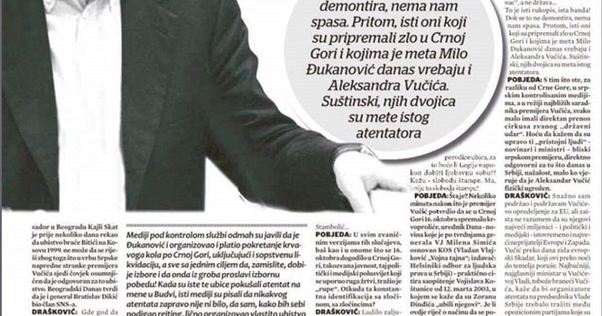 Працюючи останніми роками над темою конфліктології на Балканах, зокрема впливу Росії на ситуацію в цьому регіоні, я з інтересом прочитав інтерв'ю голови партії Сербський Рух Оновлення (Српски Покрет Обнове) легендарного Вука Драшковича чорногорському виданню Поб'єда (Побjеда).