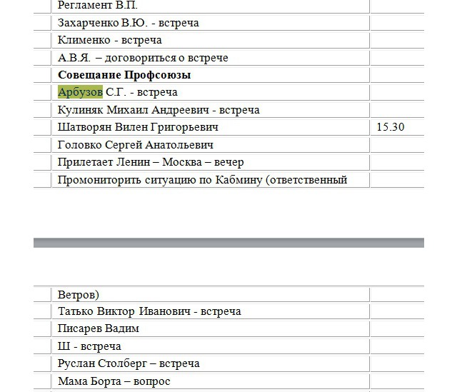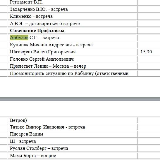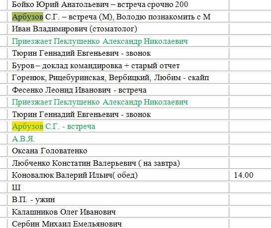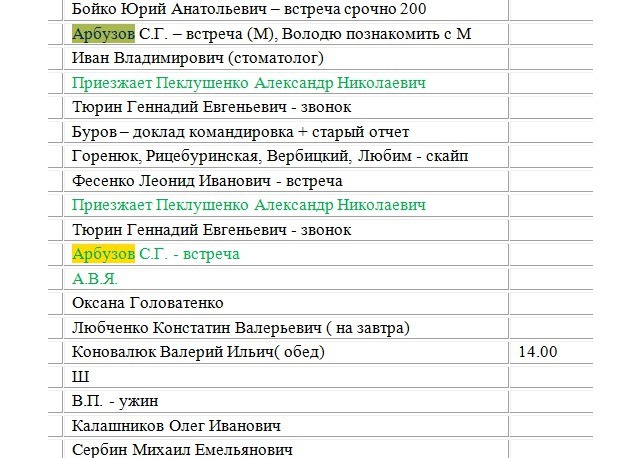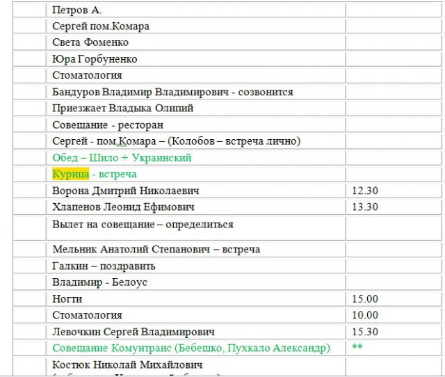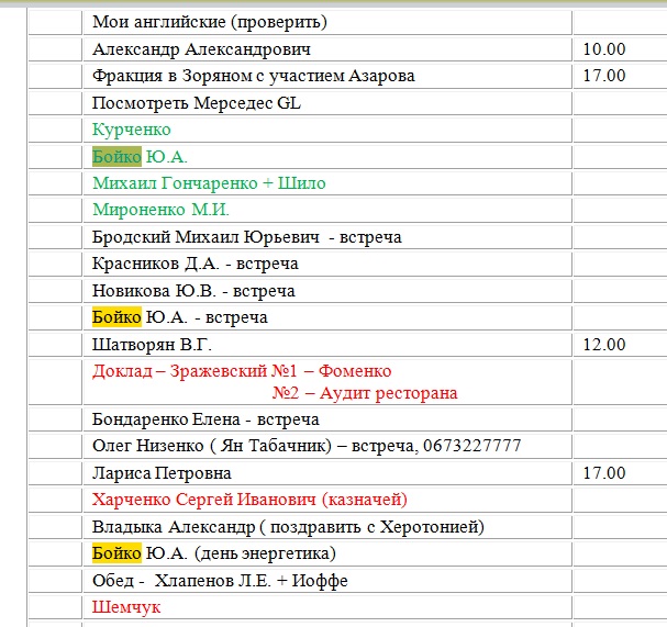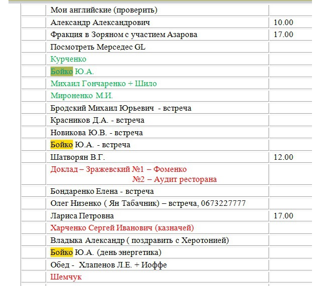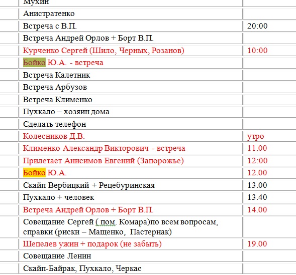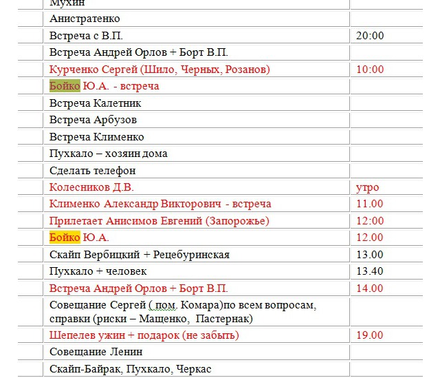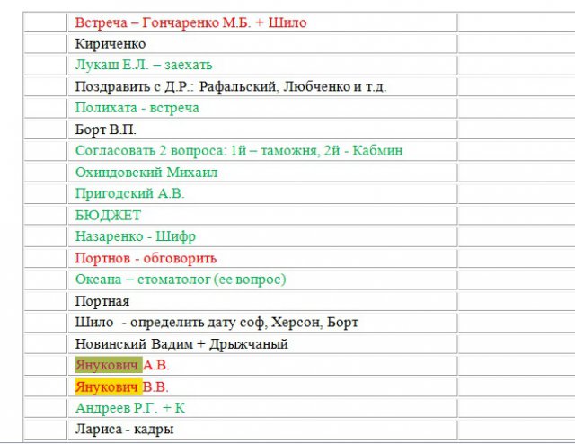 А ось одразу два Януковича заплановані, а перед ними Портнов з чимось дуже важливим, бо виділено червоним.