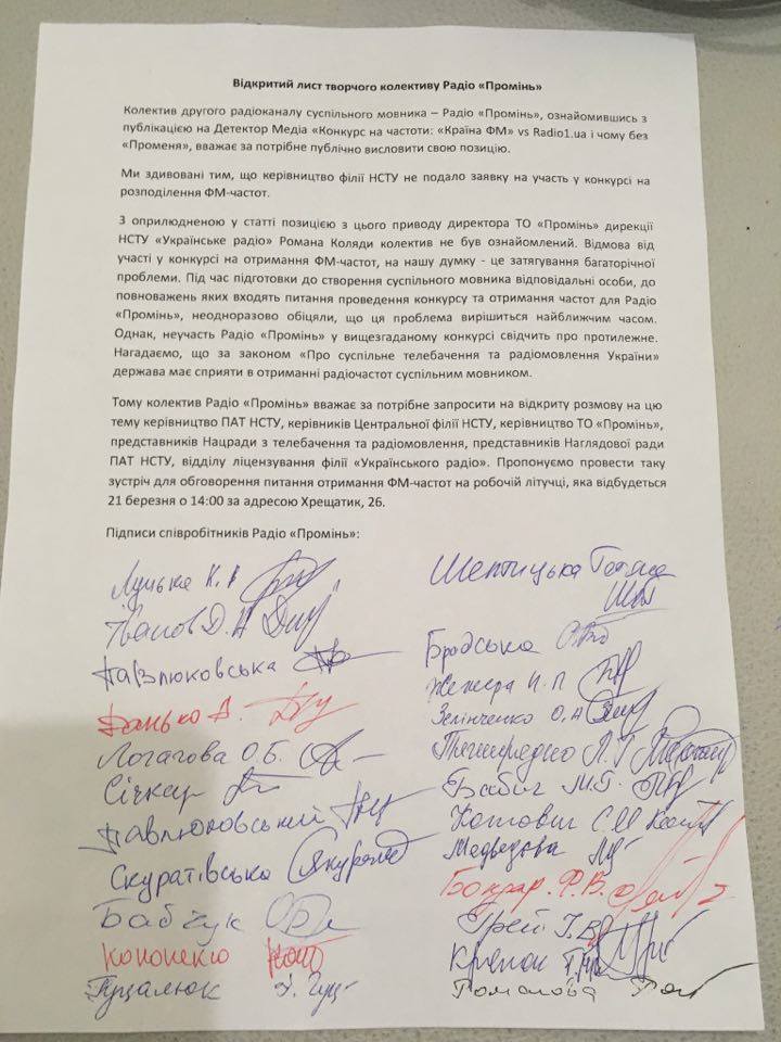 Чому ж творчий колектив радіо «Промінь», а саме підписанти відкритого листа, обурилися ситуацією, що сталася навколо розподілу ФМ-частот?