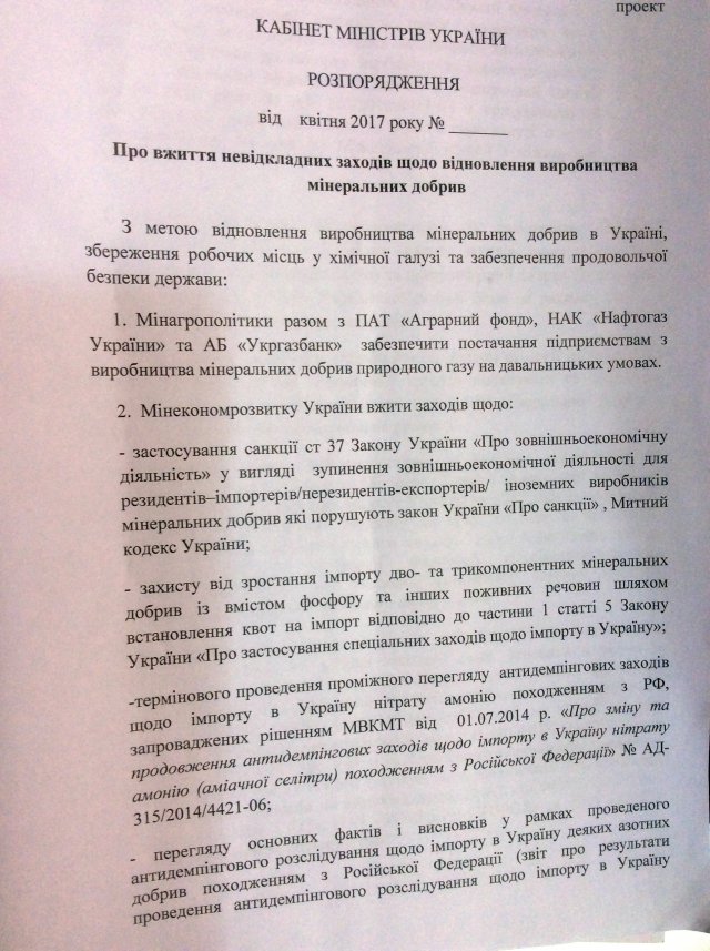 Взагалі, це не єдина «дірка» проекту Постанови «Про вжиття невідкладних заходів щодо відновлення виробництва мінеральних добрив».