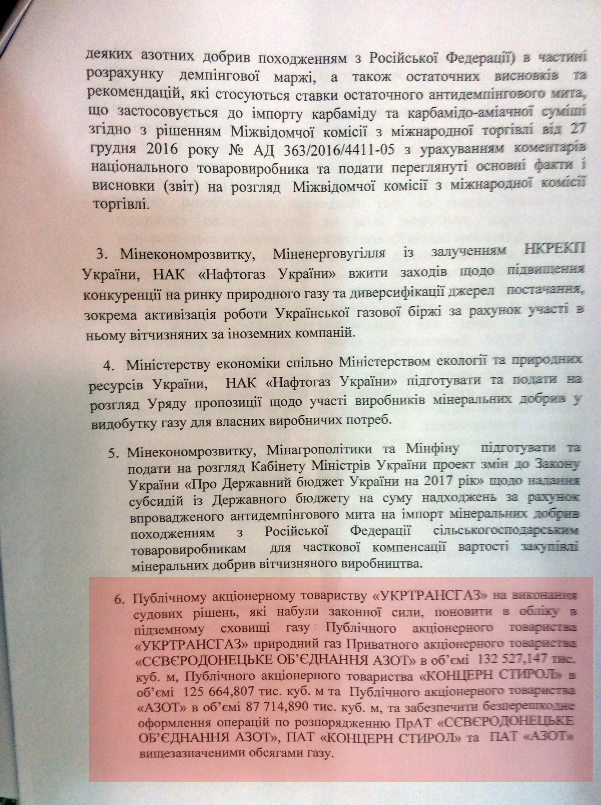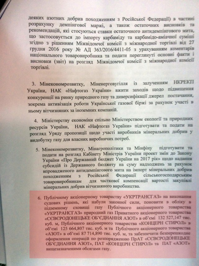 Та виявилося завчасно. Вчора прочитала у вищезгаданому проекті постанови Кабміну, що Уряд зобов'язує «Укртрансгаз» ЧАСТИНУ САМЕ ТОГО ФЕЙКОВОГО ОБ'ЄМУ ГАЗУ віддати ПАТ «АЗОТ», ПРаТ «Сєвєродонецьке об'єднання Азот» та (звертаю особливу увагу!!!) ПАТ «Концерн Стірол», що знаходиться на окупованій території.