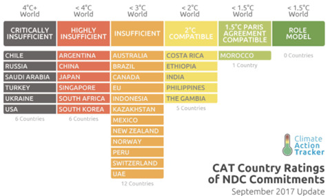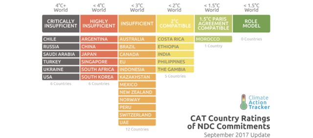 За останнім висновком "Climate Action Tracker" цілі України зараз стоять на рівні США та Росії, ведучи світ до потепління більш ніж 4°C.