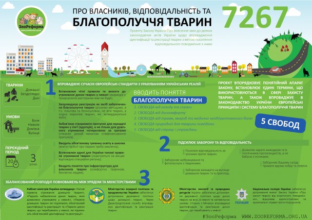 Одним з елементів цієї концепції є обов'язкова ідентифікація та реєстрація всіх домашніх тварин. Її запровадження то не тільки запорука успішного вирішення даної проблеми, завдяки цьому нарешті з'явиться можливість швидко знаходити таких недолугих власників і притягати їх до адміністративної чи кримінальної відповідальності за жорстоке або недбале поводження з тваринами. Втілення в життя цих норм наблизить Україну до цивілізованих держав світу, які ефективно запроваджують концепцію «відповідального власника домашньої тварини».