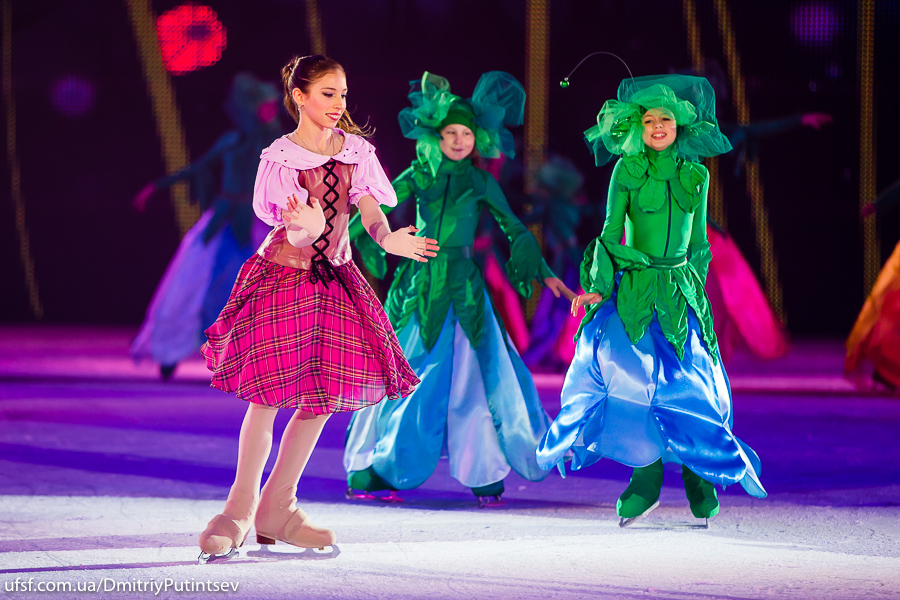 Наші прекрасні фігуристи, як дорослі так і маленькі, показали своі таланти не тількі як спортсмени, але і як прекрасні артисти. Роль Герди виконувала нова зірка вітчизняного фігурного катання, новоспечена чемпіонка Украіни 13- річна Анастасія Архіпова. Разом з нею на льоду були і член збірноі команди Украіни Іван Шмуратко, тренер та суддя з фігурного катання Ольга Довгополова, чудовий тренер Філіп Залевський. А також прекрасний тренер, чемпіон європи з фігурного катання Дмитро Дмитренко та багато інших спортсменів та тренерів.
