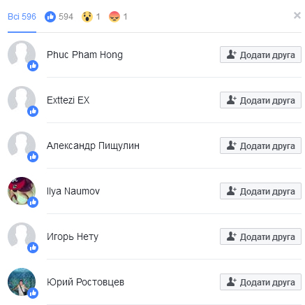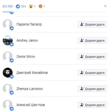 Смешно то, что имея полный фул в фб друзей под 5000 только 20-30 реально лайкнули.. Популярный шо капец, оратор)