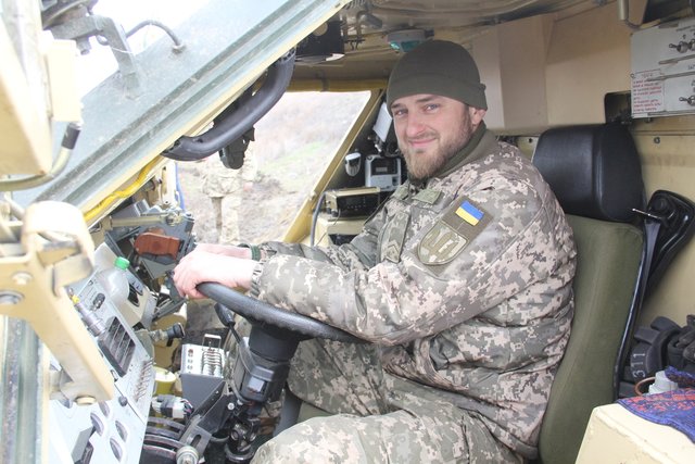 Військовослужбовець Володимир за позивним «Папай» – служив від початку війни у підрозділі Нацгвардії. Попід Луганським у кінці 2014-го неподалік 32-го блокпосту зазнав важкого поранення. Минуло кілька років лікування та реабілітації. І от знову – служба, тепер у Збройних Силах. Він підписав кілька місяців тому контракт і сів за кермо нового колісного панцирника.