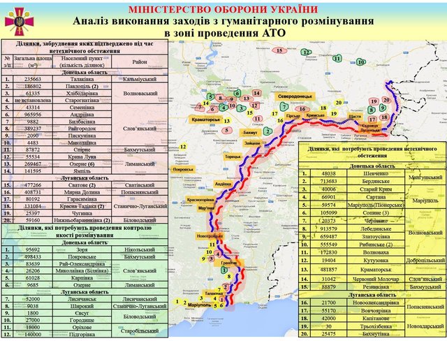 З досягнень варто зауважити на спільну розробку оборонного відомства та ДСНС, за сприяння Координатора проектів ОБСЄ в Україні, автоматизованої системи управління інформацією протимінної діяльності за допомогою програмного забезпечення IMSMA. Вона містить перелік координат територій, забруднених вибухонебезпечними предметами та результати розмінування і контролю якості останнього. Ця інформація має бути публічно доступною. Свою роботу в цьому напрямку вже розпочало і Міністерство охорони здоров’я України, яке зібрані дані надалі інтегруватиме до єдиної АСУ. Загалом поволі, але позитивно, Міноборони вирішує і болюче питання сучасного технічного забезпечення саперів. Їм тут допомагають міжнародні партнери у межах кількох програм. Приміром, днями Центру розмінування Головного управління оперативного забезпечення ЗСУ (у Кам’янці-Подільському) представники ОБСЄ передали сучасне обладнання для однієї групи розмінування.