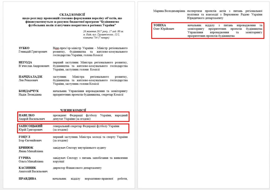 Що цікаво, планування та підготовка реалізації схеми датується березнем 2017 року. Тобто, за півроку до внесення головою бюджетного комітету Верховної Ради Павелком, змін до Держбюджету, про виділення державних коштів на будівництво футбольних полів.
