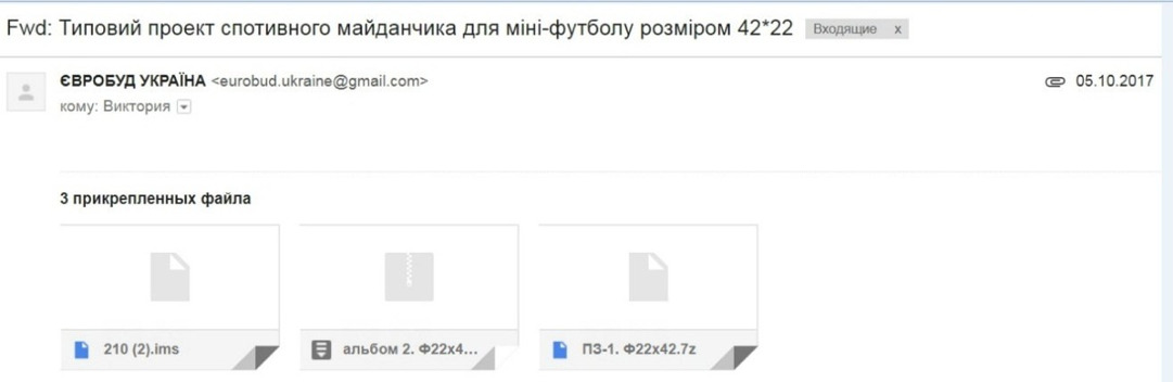 - 19 грудня співробітник "Спорт Технології" Євген Третьяков надіслав Бахановій, серед іншого, бланк заявки від 12 травня на закупівлю матеріалу для міні-футбольного поля 42х22 м на Львівщині;