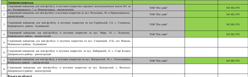 Далі це підтвердили самі держадміністрації, які почергово, звернулися до Мінгрегбуду з проханням внести до Програми об’єкти тих розпорядників бюджетних коштів, які підтвердили готовність закупити штучне покриття саме у "Спорт Технології". Фактично, відзвітувавши про успішно виконане завдання з наданням документів до Міністерства.