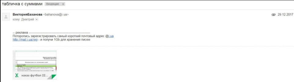 А потім, 11 лютого, лист із красномовною темою: "табличка все зійшлося", що містить файл "загальна з заробітком".