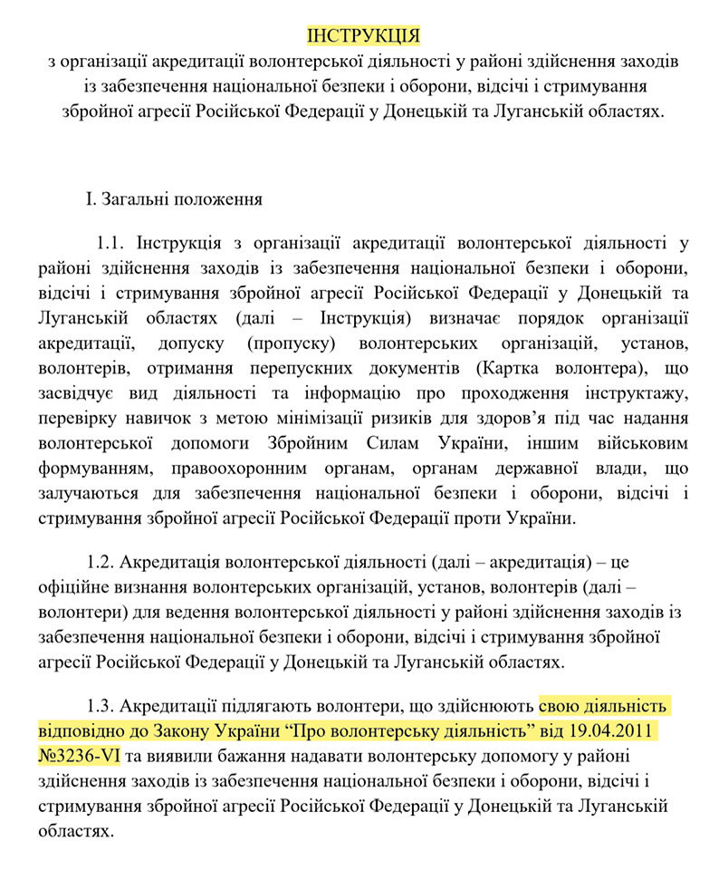 Розглянемо документ? Його найодіозніші пункти і чим, власне, він такий небезпечний для волонтерства як явища?