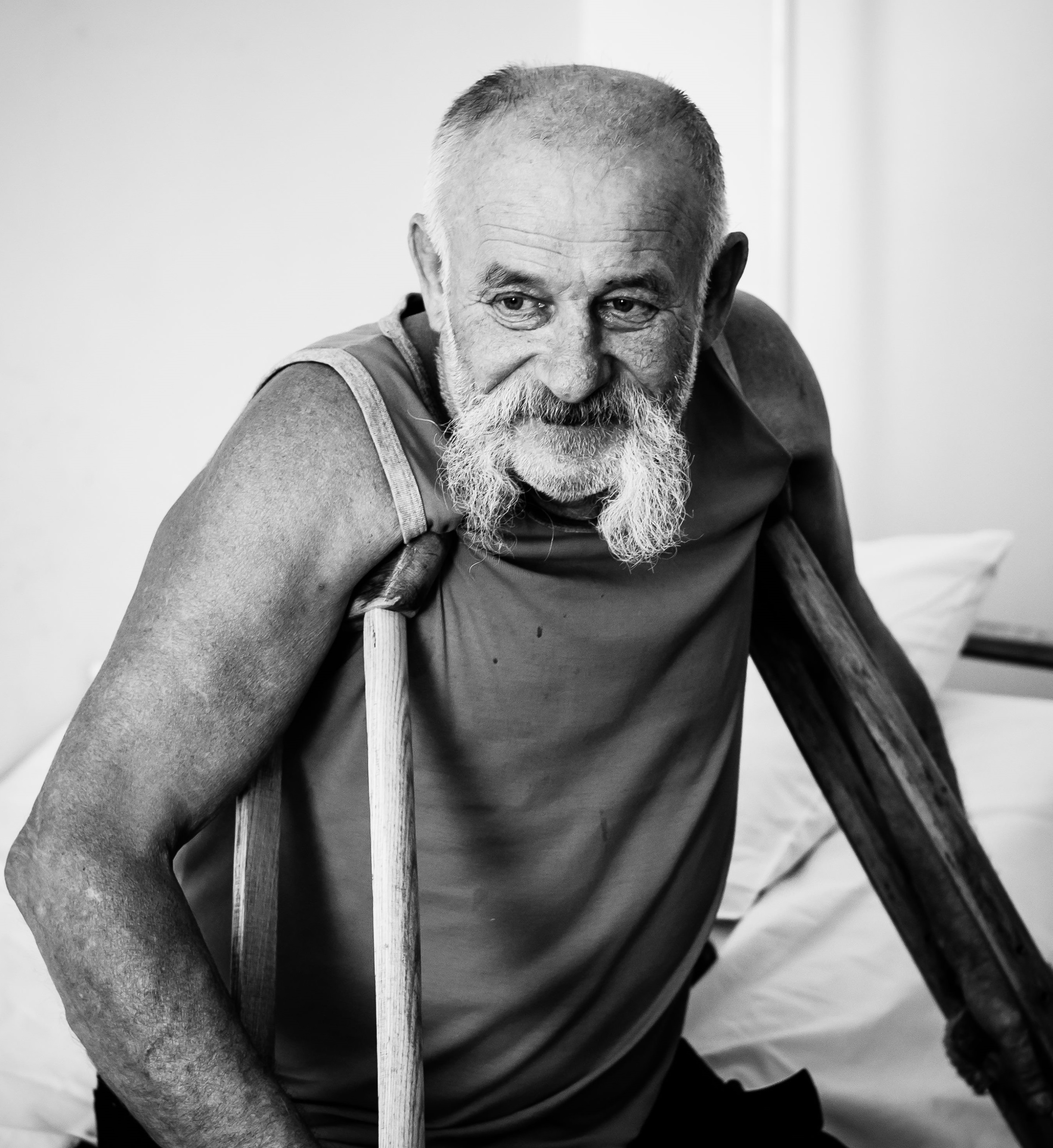 Василь Левчук, по-бойовому "Дєд", на війні з перших днів. Він невисокий на зріст, жвавий та міцний. На милицях лункими коридорами лікарні пересувається так само вправно, як путівцями Донбасу за кермом "своєї машини". У нього добрі блакитні очі, молочні козацькі вуса, прямий усміхнений погляд.