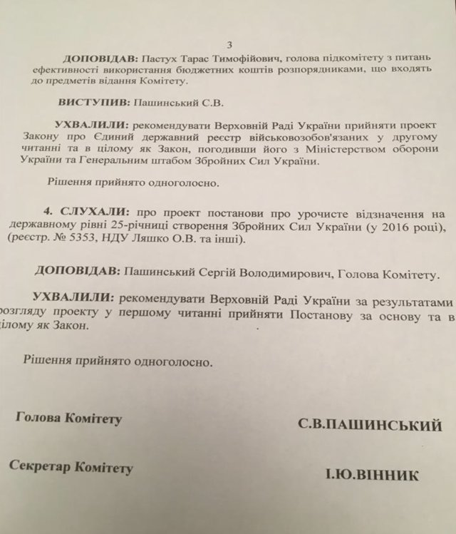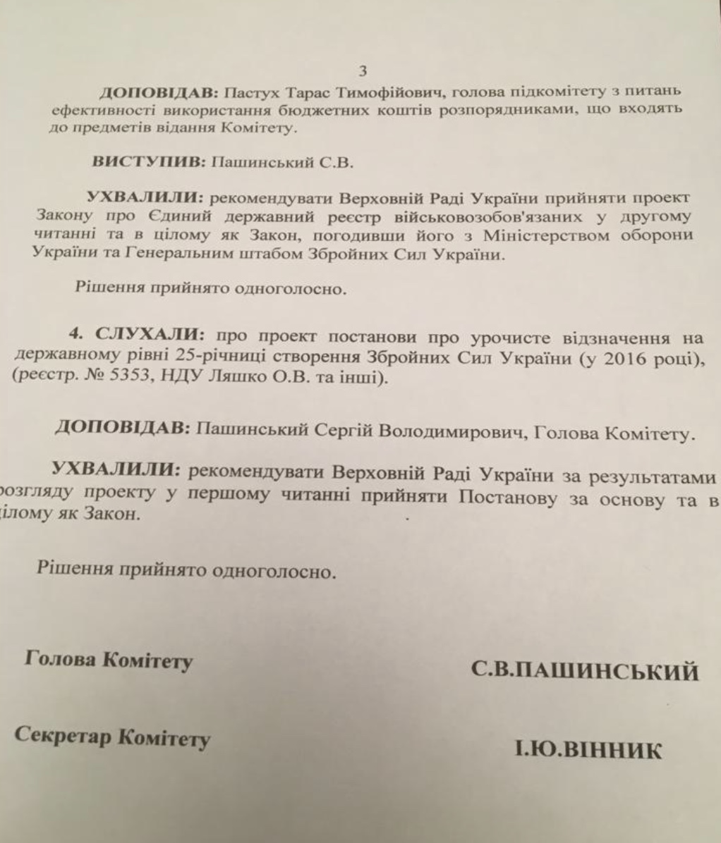 А про эффективность комитета Пашинского и Винныка лучше вот не надо.