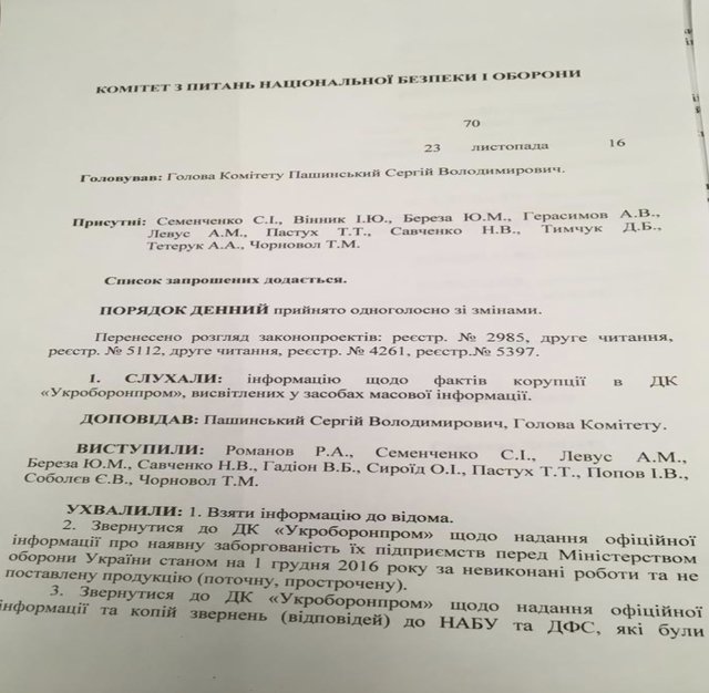 Попри суттєвий резонанс цього розслідування, треба відзначити, що по частині матеріалів вже довгий час існує декілька проваджень, в тому числі ті, котрі порушенні по результату засідань нашого Комітету з питань національної безпеки та оброни. До речі, на засідання ми запрошували керівництво «Укроборонпрому» та військового прокурора Анатолія Матіоса. Залучили до процесу НАБУ та ДФС.