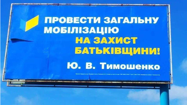 У ЗМІ не раз можна було почути про скандал з підкупом кандидата в Президента Тимошенка. Та на цьому все не закінчилося. Він будучи військовослужбовцем почав закликати народ мобілізуватися на захист батьківщини. Такі плакати можна побачити в місті Костянтинівка Донецької області, де люди більш за все стомилися від війни, а дехто навіть втратив своїх близьких.