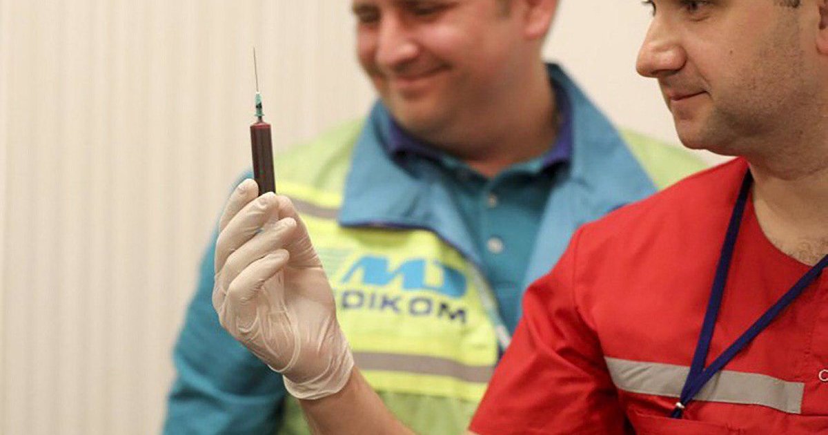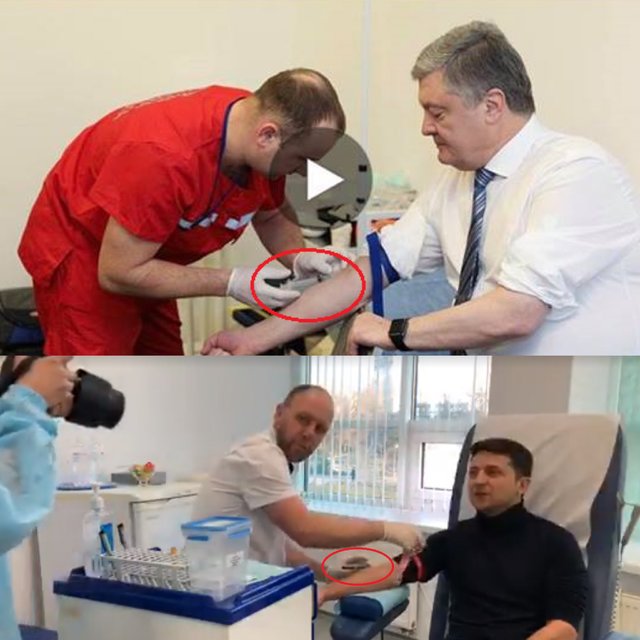 Уважно подивіться на фото, я спеціально перевірив за допомогою чого брали кров у кандидатів в президенти. У Зеленського за допомогою сучасної вакуумної пробірки «VACUSERA», яку використовують у всьому світі.
