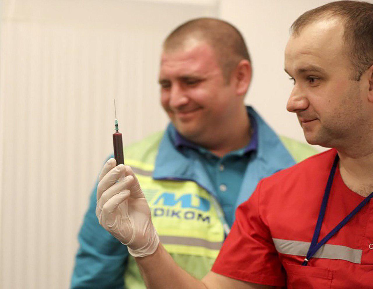 А тепер подивіться, як і чим беруть кров у Порошенка (про методику писав тут). Беруть кров звичайним шприцом, що є ідіотизмом у прямому сенсі цього слова!