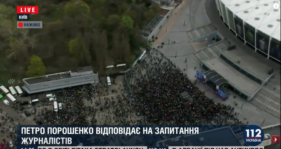 Вчора відбулася грандіозна подія, якщо вірити Порохоботам, які скоро залишаться без роботи. На стадіоні НСК «Олімпійський», який вміщує 70 тис. місць, Порошенко спромігся зібрати орієнтовно 6000 (поліція заявила про 5000). Ми розуміємо та віримо, що ця зустріч Порошенка з бюджетниками та проплаченою масовкою остання. Йому вже не допомагає перерахунок пенсій, монетизація субсидій, виплати одноразової допомоги, підвищення зарплат військовим, Українці беруть від Порошенка все, а потім не голосують за мародера...