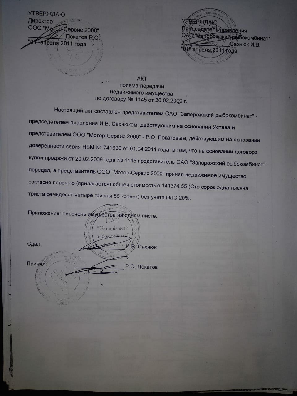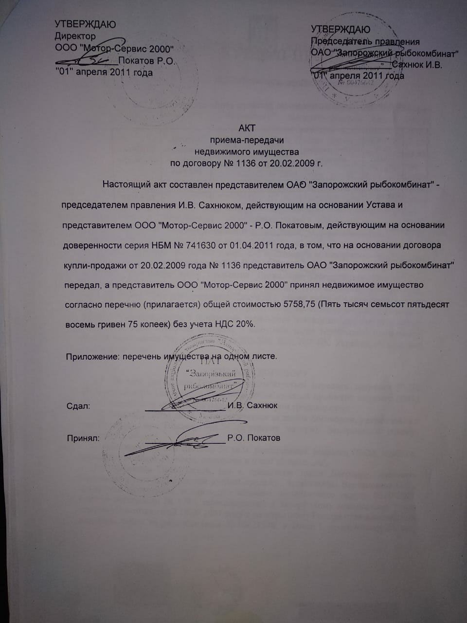 Однако, документы одного из основных акционеров бывшего рыбхоза – АО "Мотор Сич" говорят об обратном.