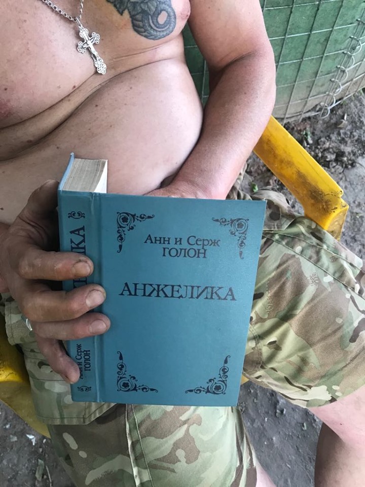 Біля однієї з будівль досить безпечно. Тому саме тут облаштовані душ та кухня. В закутку під деревом можна спокійно посидіти в прохолоді. Проходячи повз бійця з книжкою, поцікавилася: "Що читаєте?" Він просто показав обкладинку. "Анжеліка"... "Це третя книга. А їх чи сім, чи вісім", - пояснив і заглибився в роман.