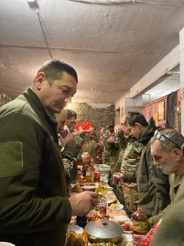 - В мене дома батьки, дідусь, бабуся, братчик, сестра. Вони передали мені кутю в справжній глиняній мисці. З якої в нас прийнято їсти. Пампушки, рибу, грибочки – це наблизило мене до дому. Та й хлопці оцінили. Тому щиро бажаю усім, щоб ми найшвидше перемогли в цій війні і повернулися до дому. Щоб святкувати Різдво з своїми рідними. Слава Україні!