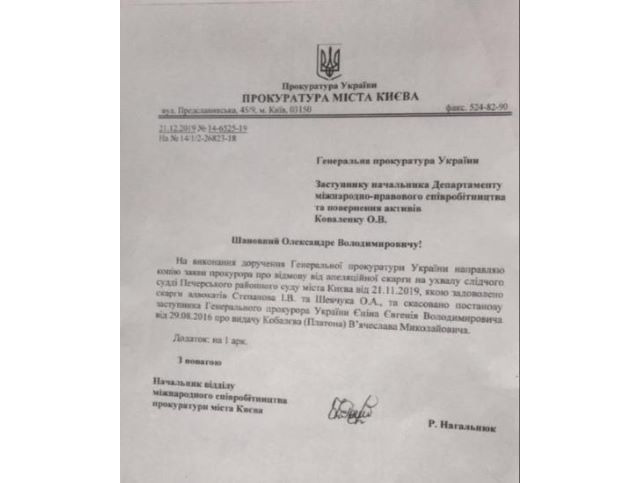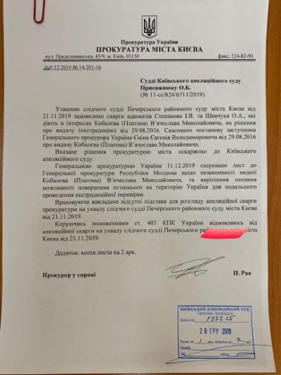 І тоді за справу береться особисто український Генпрокурор. Руслан Рябошапка своїм листом інформує молдавського колегу, що видача Платона в Молдову була незаконною, і вимагає… повернути Платона в Україну «для подальшого проведення екстрадиційної перевірки» – тобто звільнення на волю.